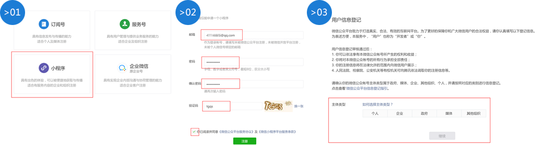 > 01:访问微信公众平台注册小程序账号