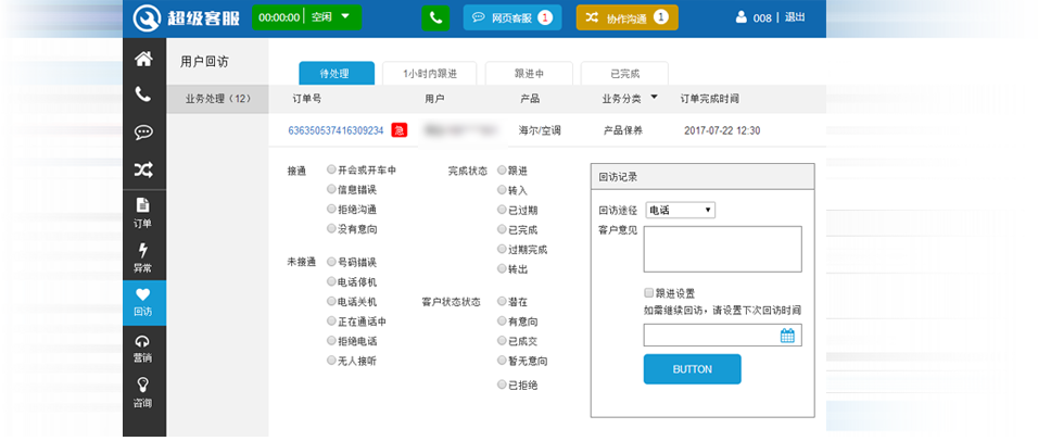 回访服务,订单管控